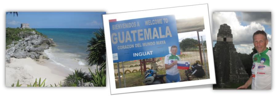 Pot je začel v Mehiki, v Cancunu, in kolesaril po vseh osmih državah celinskega dela Srednje Amerike. Ob koralnem grebenu je plaval z želvami. V bližini si je ogledal majevske templje. Enako tudi v Belizeju in Gvatemali. Pot je nadaljeval prek Salvadorja in Hondurasa ter prikolesaril do Nikaragve, kjer je za prestop meje potreboval 22 ur. Kasneje so ga tam tudi okradli. Kolesaril je v Kostariko in pot zaključil v Panami, v Ciudad de Panama, kjer je moral na letališču pustiti kolo. Skupaj je v mesecu in pol prekolesaril 2786 km.