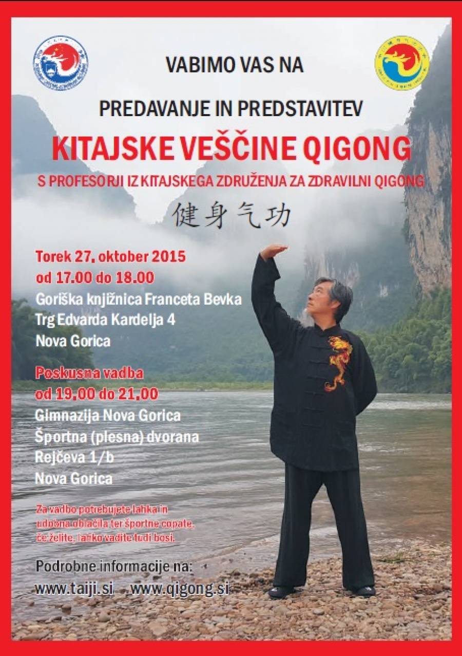V torek, 27. oktobra 2015, vas ob 17. uri vabimo na predavanje in predstavitev kitajske veščine Qigong s profesorji iz kitajskega združenja za zdravilni Qigong.