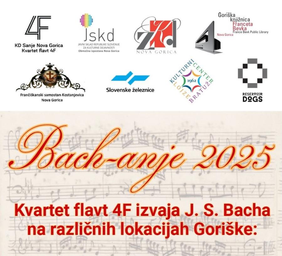 V soboto, 15. marca 2025, ob 12. uri lepo vabljeni, da prisluhnete Kvartetu flavt 4F, ki bo izvajal dela J. S. Bacha. Z nastopom Bach-anje 2025 bodo nastopili v osrednjem prireditvenem prostoru Goriške knjižnice.