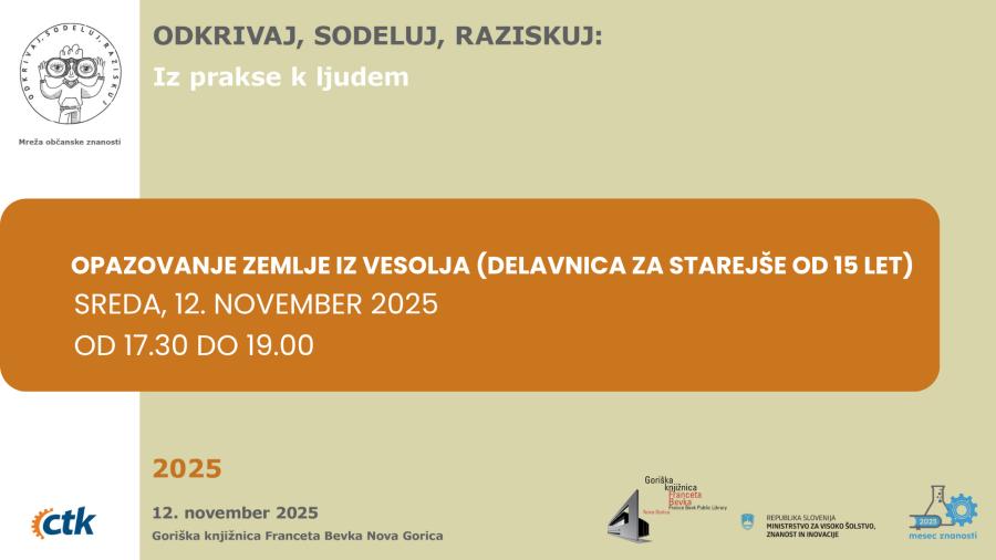 Delavnica bo potekala v okviru 3. dneva občanske znanosti. Več o dogodku: tukaj.