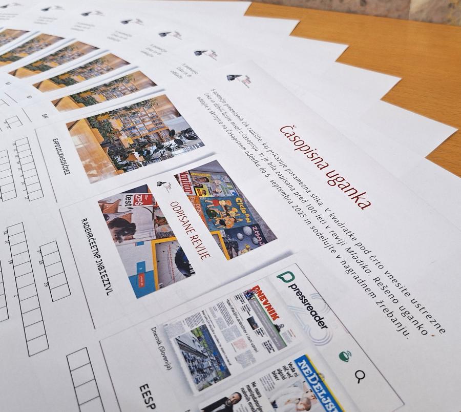 Vabljeni k reševanju nove časopisne uganke. Izvedeli boste, kaj so časnikarji pred 100 leti zapisali o pomenu časopisja. Rešeno uganko oddajte v skrinjico na Časopisnem oddelku do 6. septembra 2025 in sodelujte v nagradnem žrebanju.