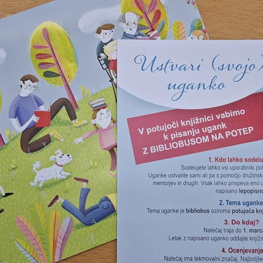 Vabljeni vsi uporabniki knjižnice, da sami ali z družinskimi člani, prijatelji, sošolci, mentorji ali drugimi ustvarite uganko. Vsak sodelujoči lahko prispeva eno uganko v slovenskem jeziku, napisano ročno. Tema uganke je bibliobus oziroma potujoča knjižnica. Prepustite se domišljiji in ustvarjalnosti!