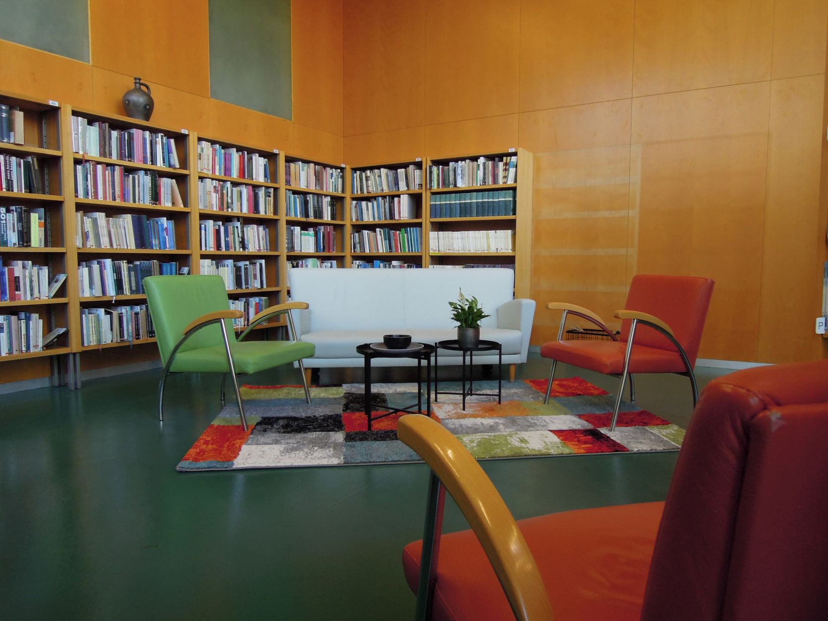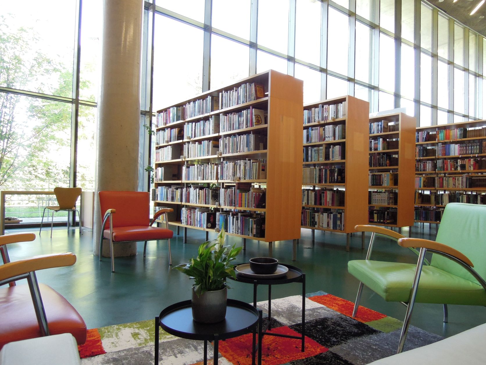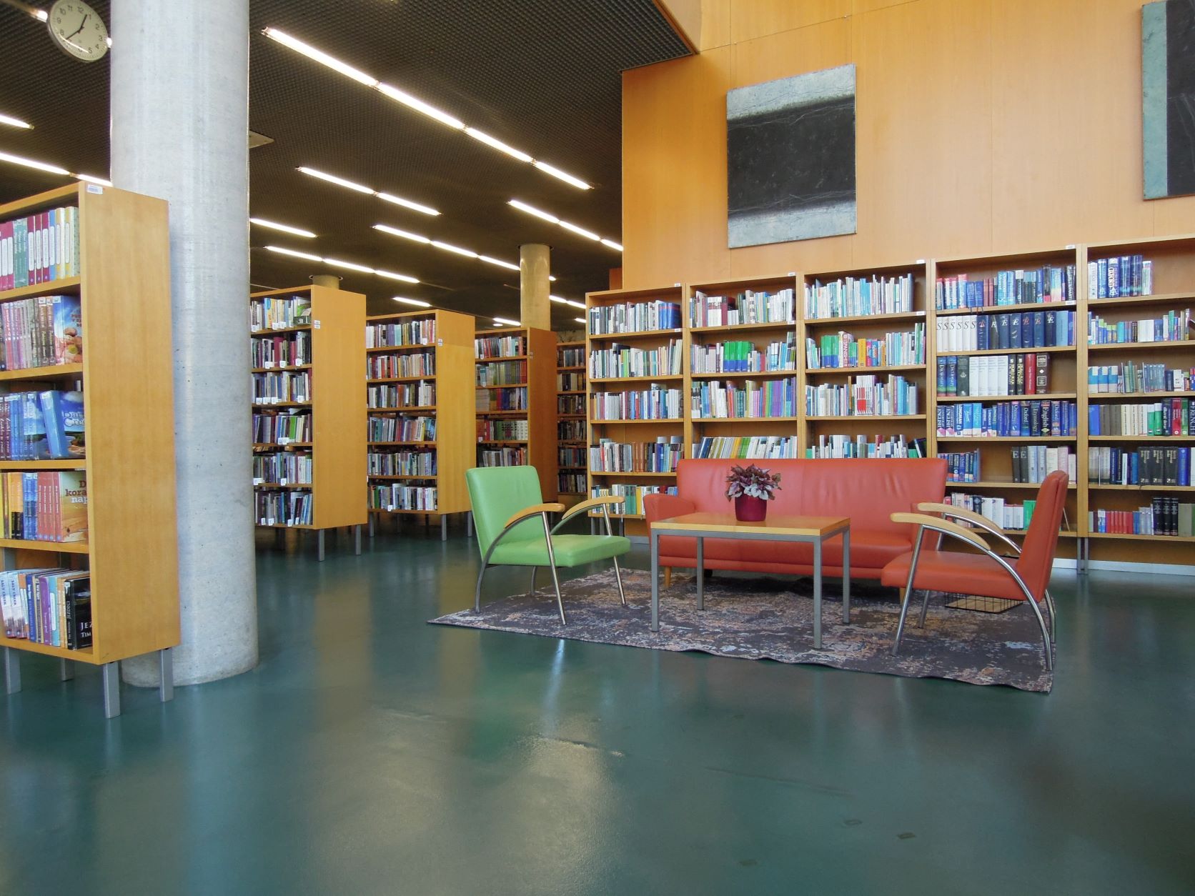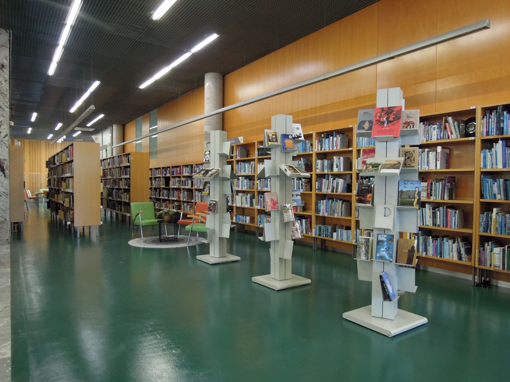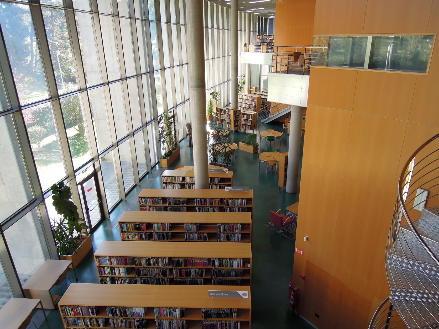 Na policah pod stopniščem so biografije domačih in tujih osebnosti. Zbrana in izbrana dela slovenskih avtorjev, nekatere dvojnike, stare tiske in dela, po katerih ni večjega povpraševanja, hranimo v skladišču, zato morajo uporabniki zanje vprašati informatorje. V jezikoslovnem kotičku so splošni priročniki o jeziku in jezikoslovju, priročniki, slovnice in slovarji za posamezne jezike ter gradivo o slovenski in tuji literarni zgodovini in kritiki.