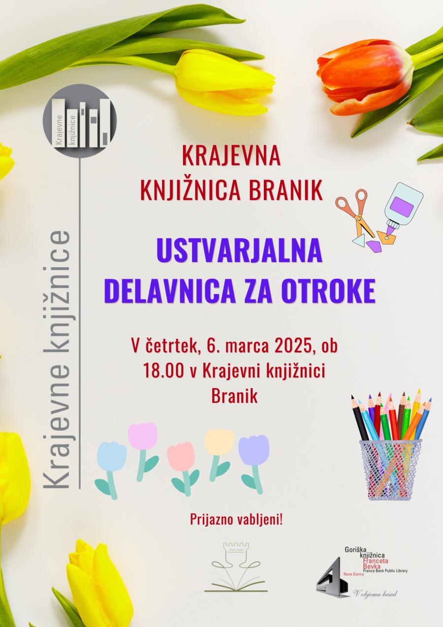 V četrtek, 6. marca 2025, ob 18. uri otroke vabimo na ustvarjalno delavnico. Izdelovali bomo drobne pozornosti za dan žena.