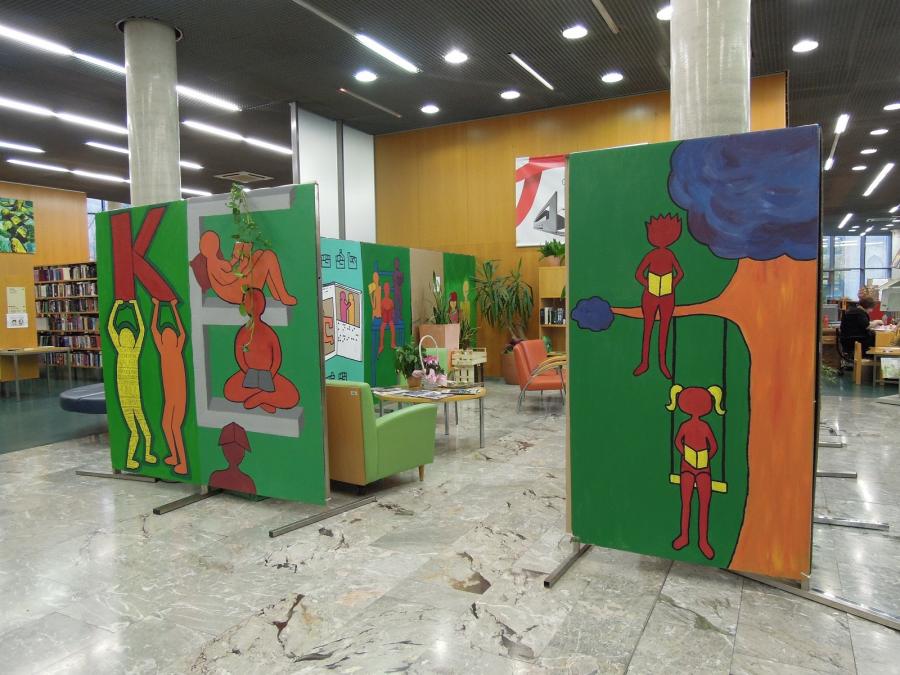 Sredi pritličja zelena oaza. Take pa še nismo imeli, Zelene knjižnice namreč. Vstopite, sedite, preberite: na voljo so knjige in časopisi naravi, o živalih, okoljski problematiki, vrtnarjenju, romani in pravljice, priročniki, dvd-ji. Revije lahko berete tu, knjige si lahko tudi izposodite.