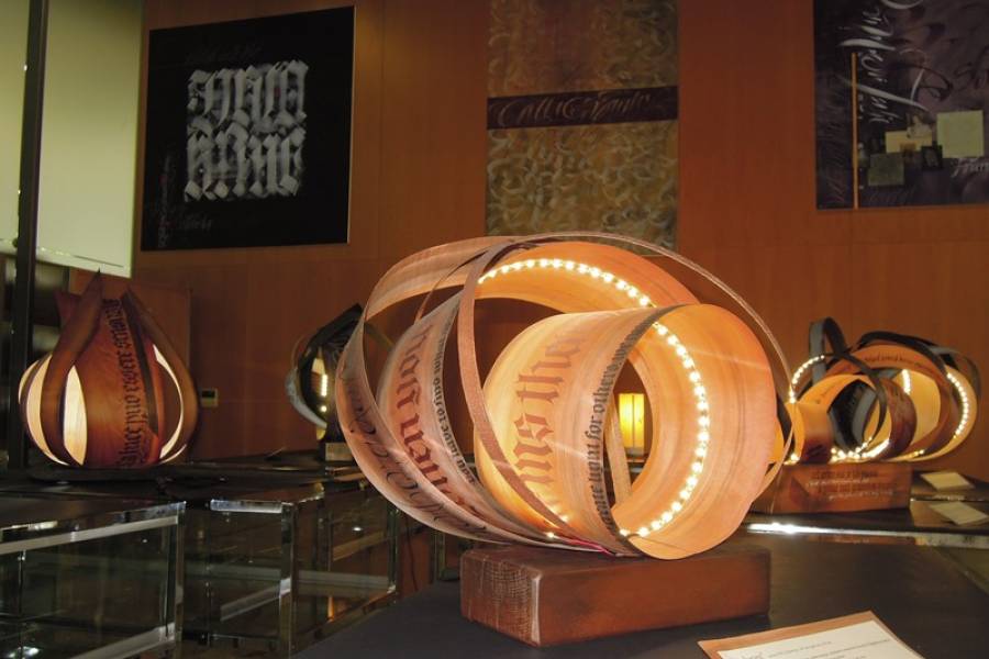 V osrednjem delu pritličja je na ogled kaligrafska razstava Loredane Zega z naslovom Kaligrafija - les - svetloba.