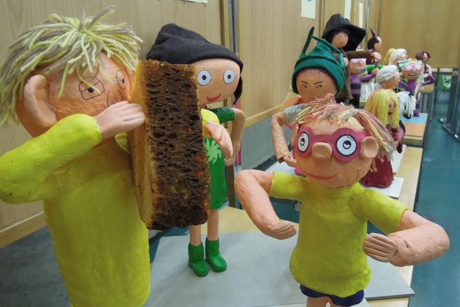 Knjižne junake so izdelovali z uporabno različnih odpadnih materialov v času ustvarjalnega preživljanja časa v podaljšanem bivanju in v okviru Delavnic ustvarjalnosti pod mentorstvom Leonide Gregorič.